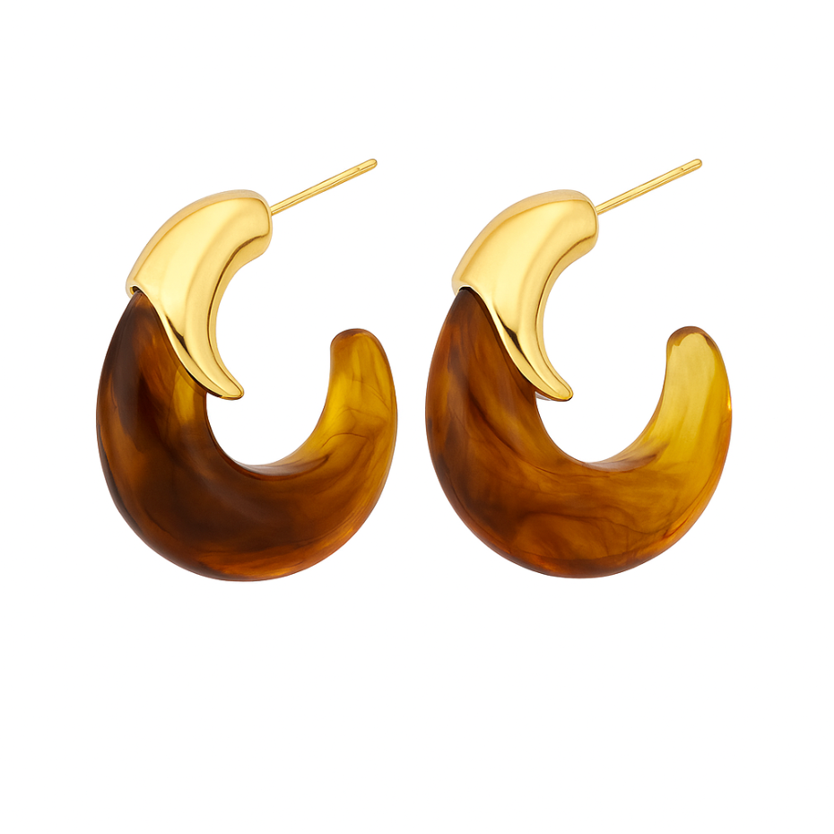 Aretes curvos en resina ámbar con detalle dorado
