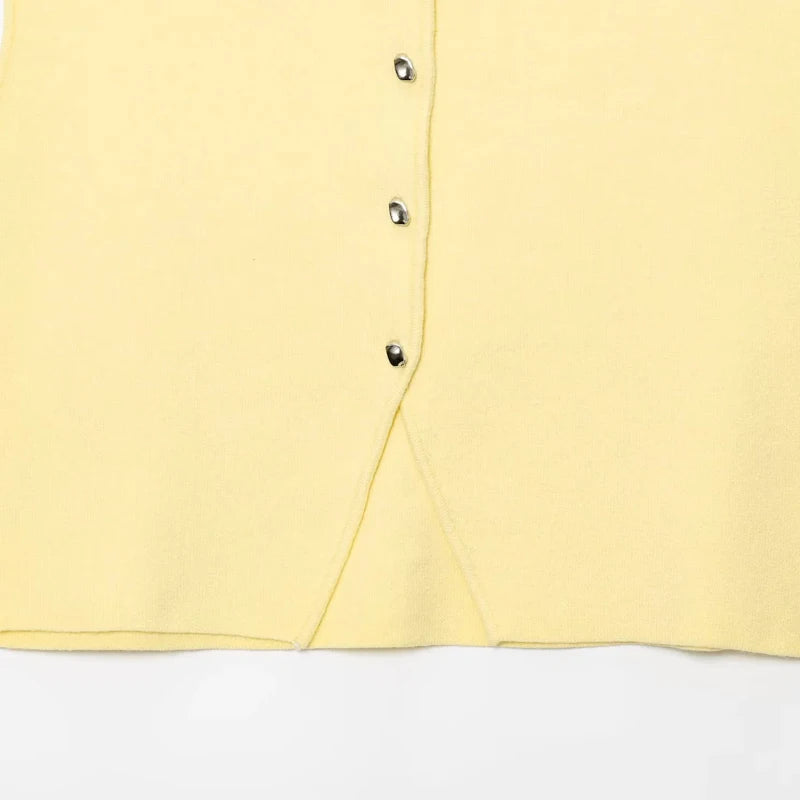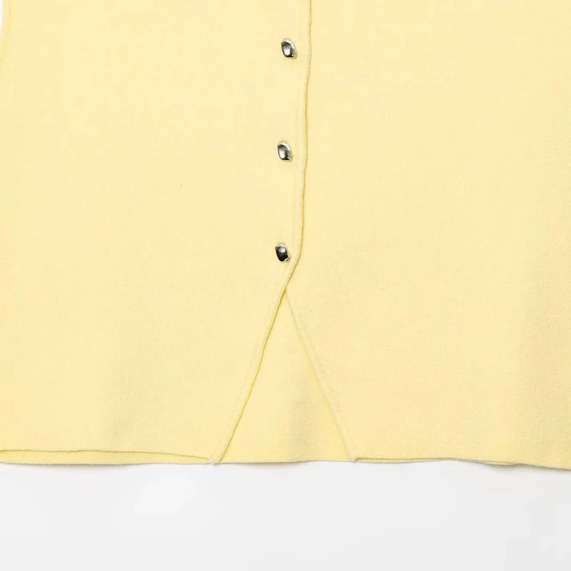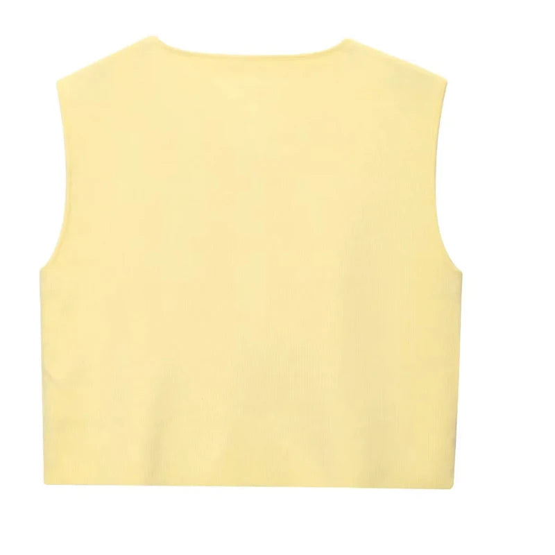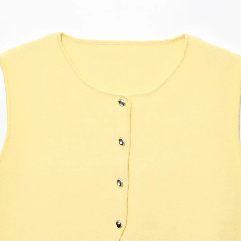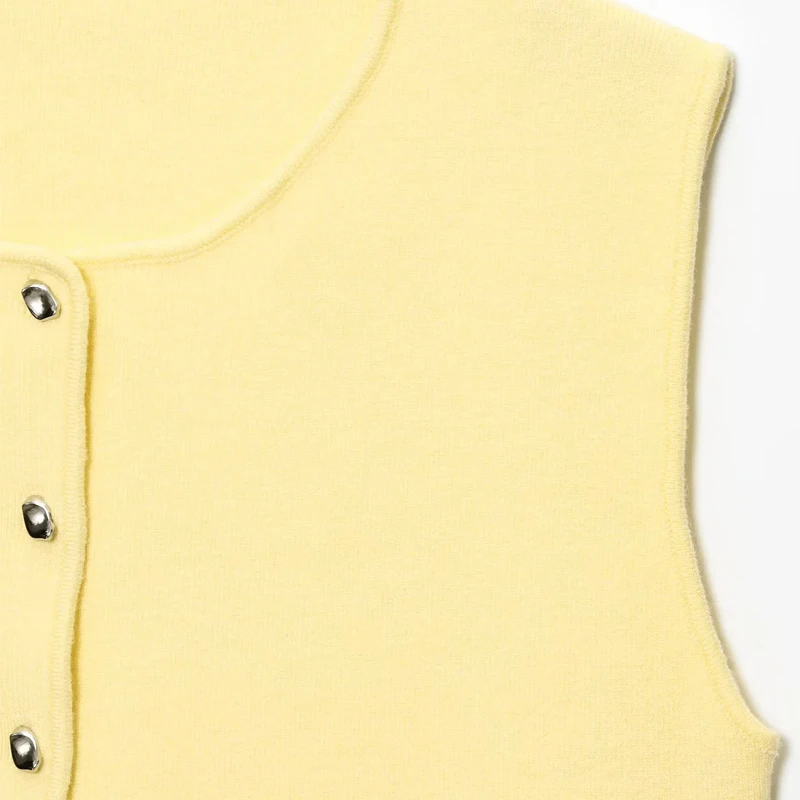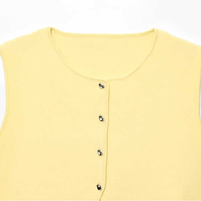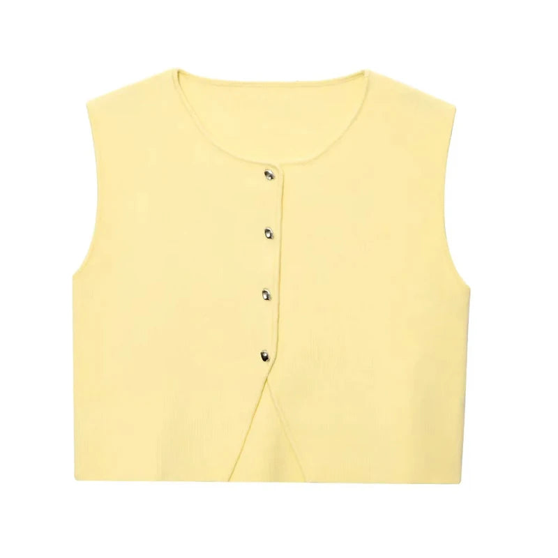 Suéter recortado de punto sin mangas y botones