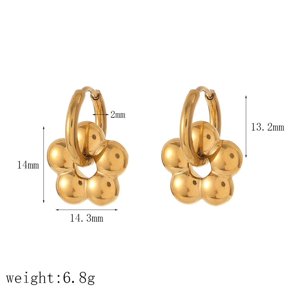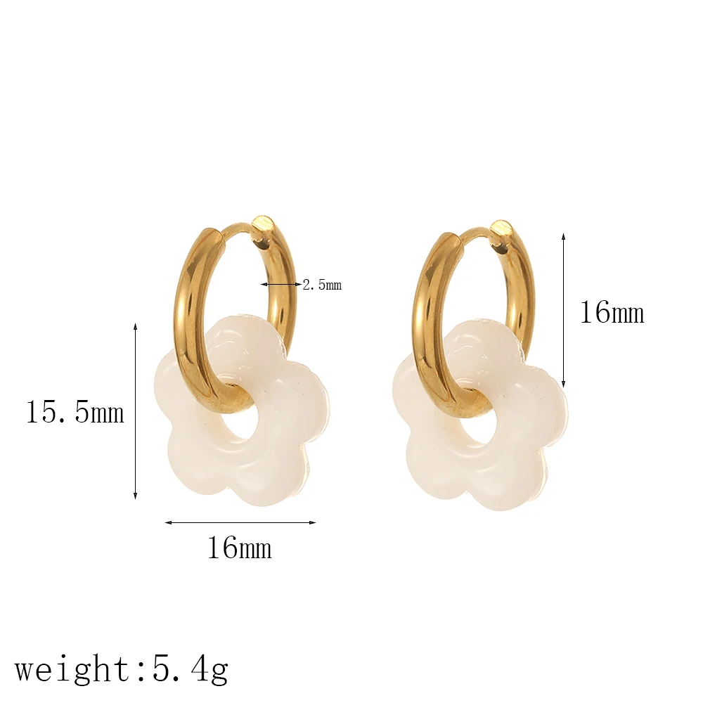 Aretes de aro de acero inoxidable con forma de flor de color / Varios colores