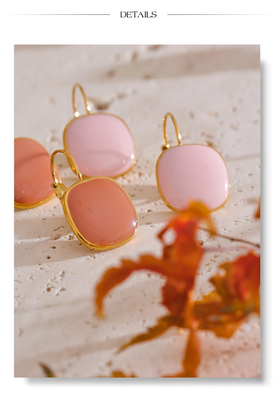 CANDY🍭 Aretes de aro cuadrados color caramelo esmaltado de acero inoxidable / Varios colores
