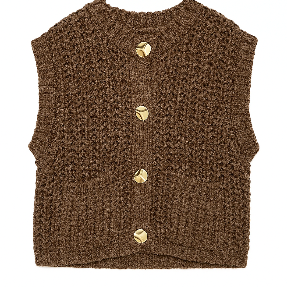 Chaleco de punto recortado con botones y bolsillos delanteros
