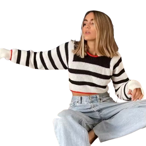 Suéter recortado a rayas espalda descubierta