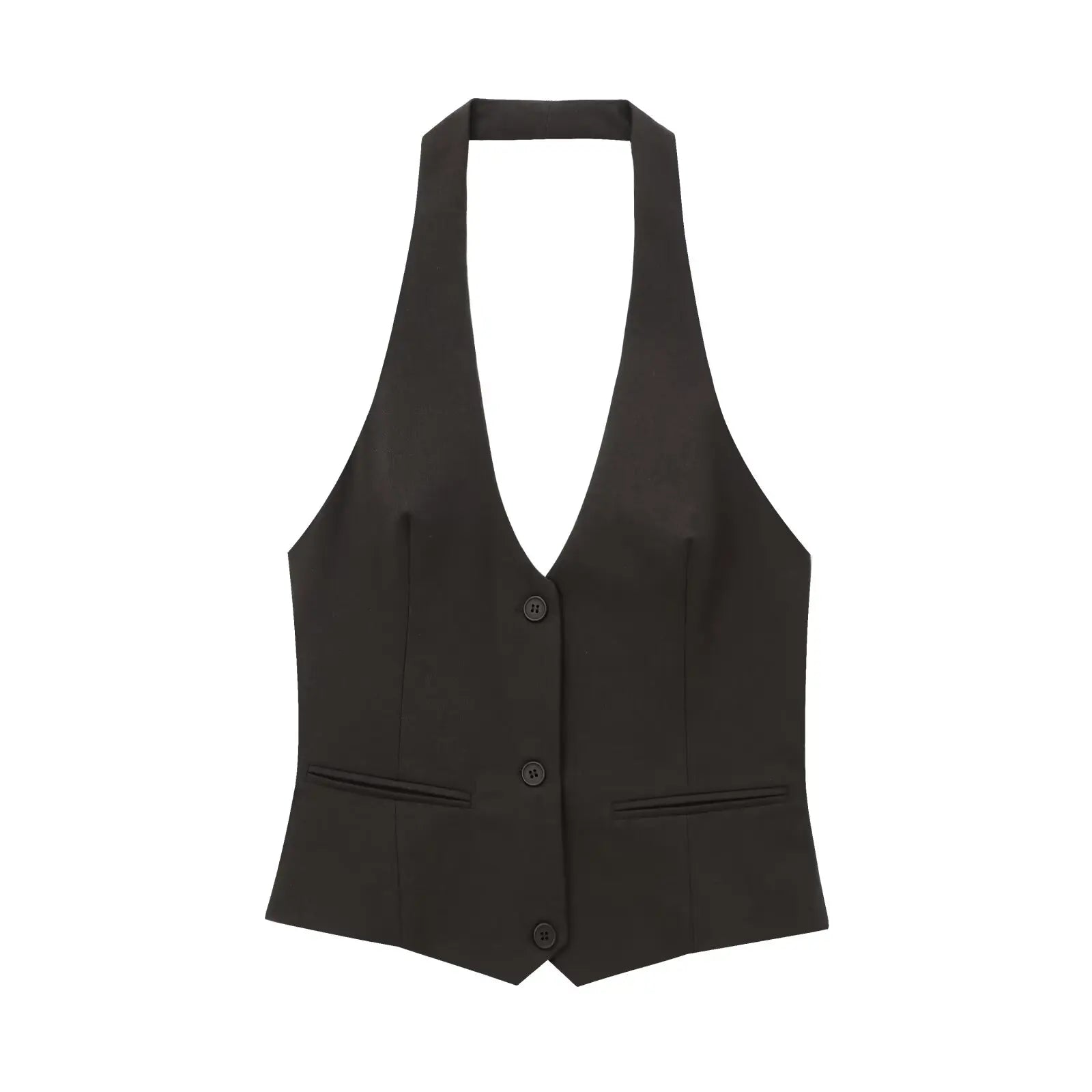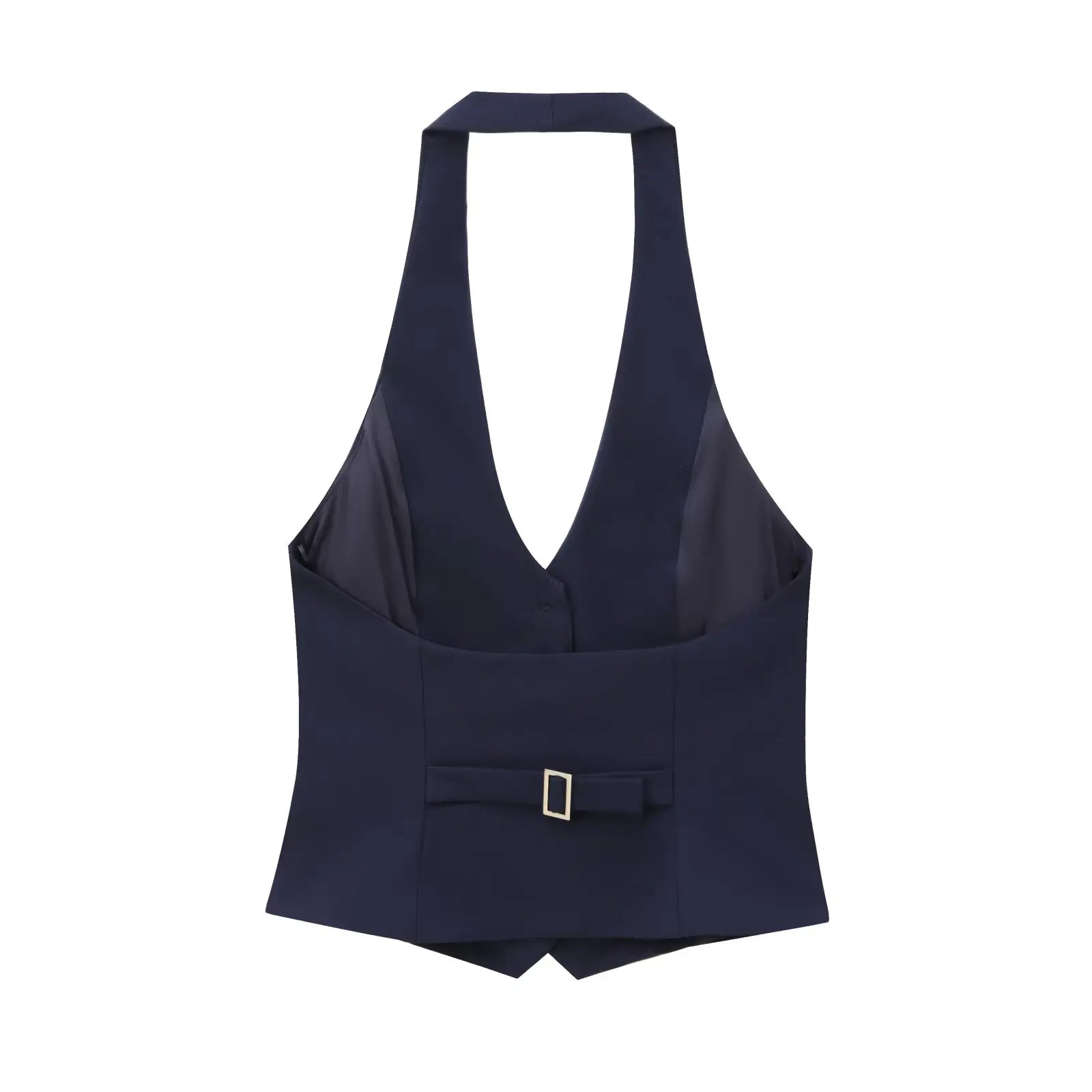 Top con cuello halter con hilera de botones y cuello en V / Varios colores