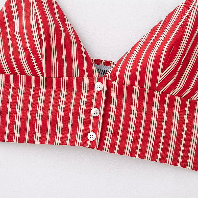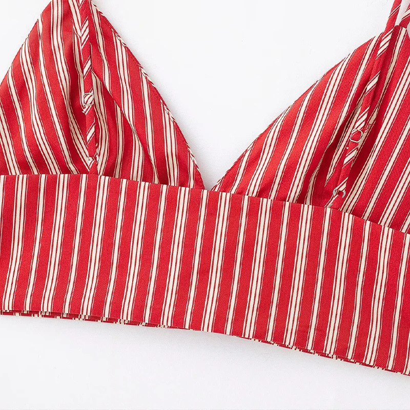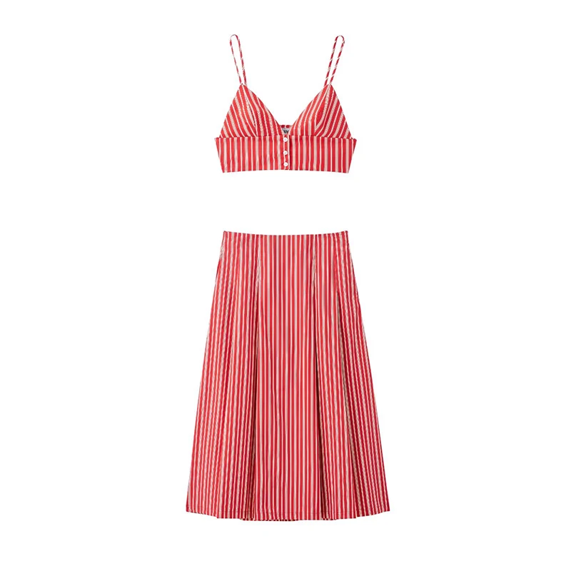 Set de 2 piezas de top plisado con espalda descubierta a rayas y falda corta a rayas