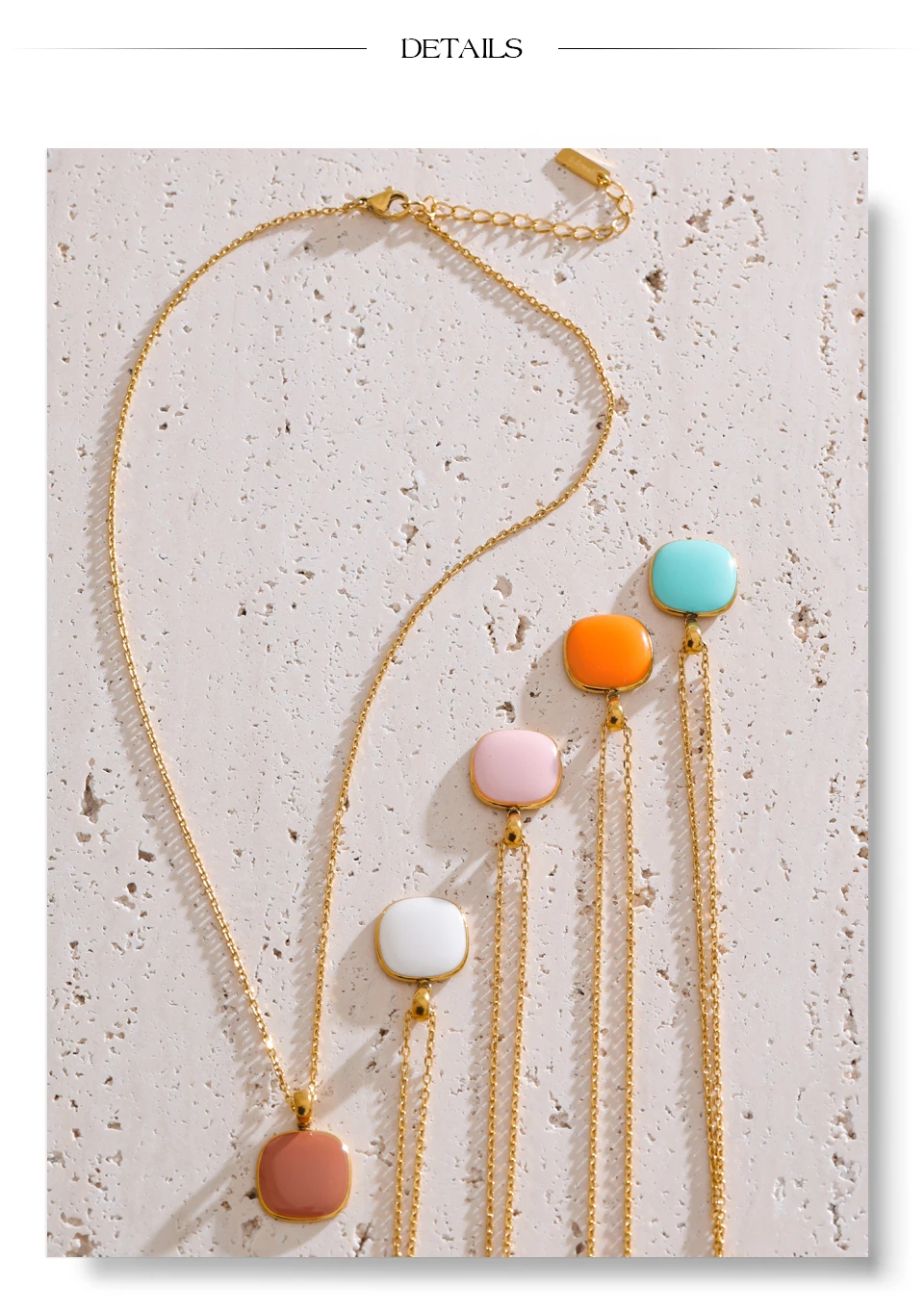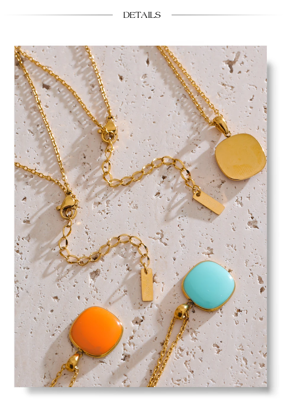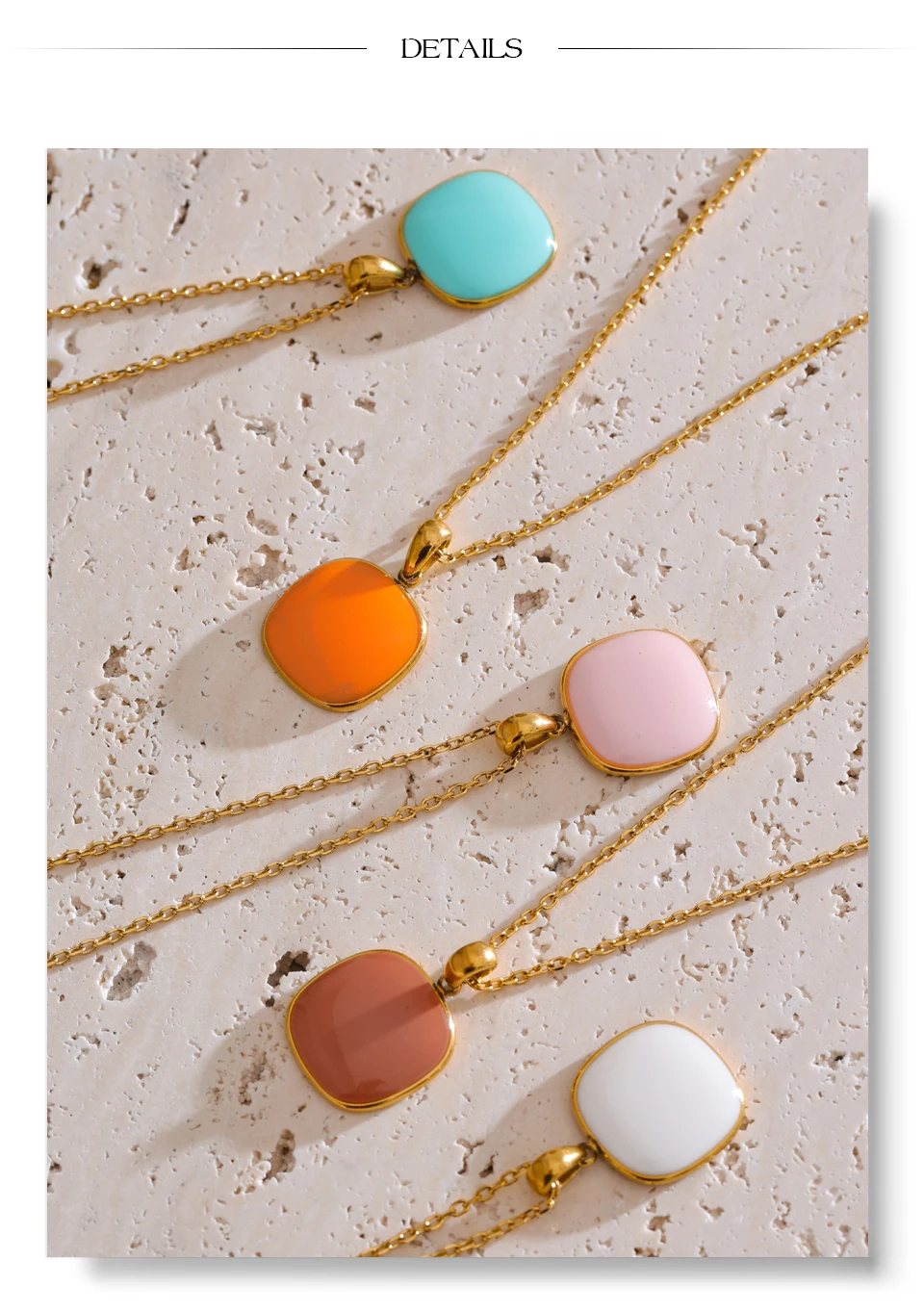 CANDY🍭 Collares con colgante cuadrado de color caramelo esmaltado de acero inoxidable / Varios colores