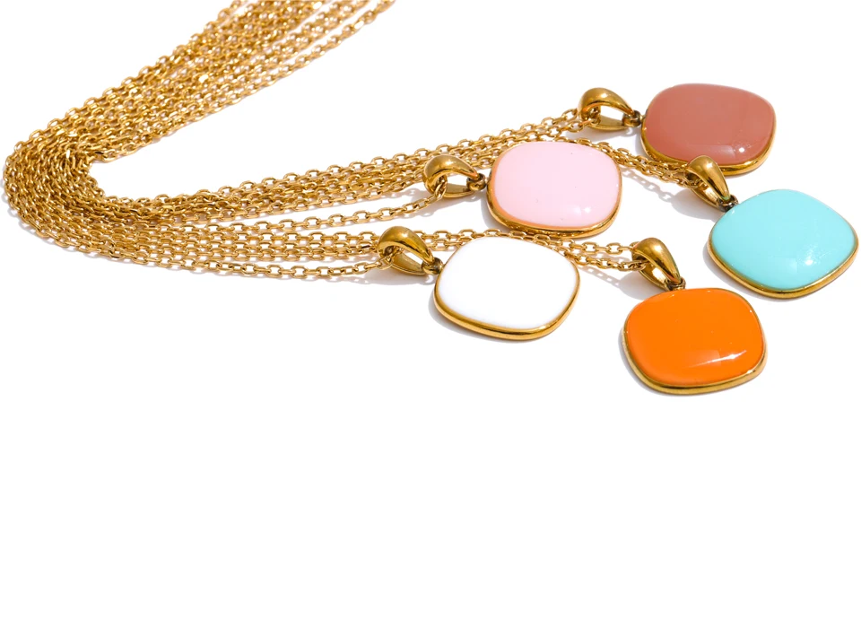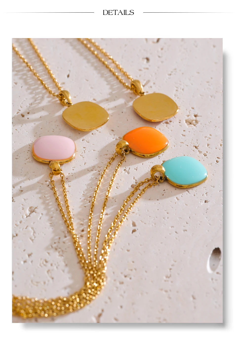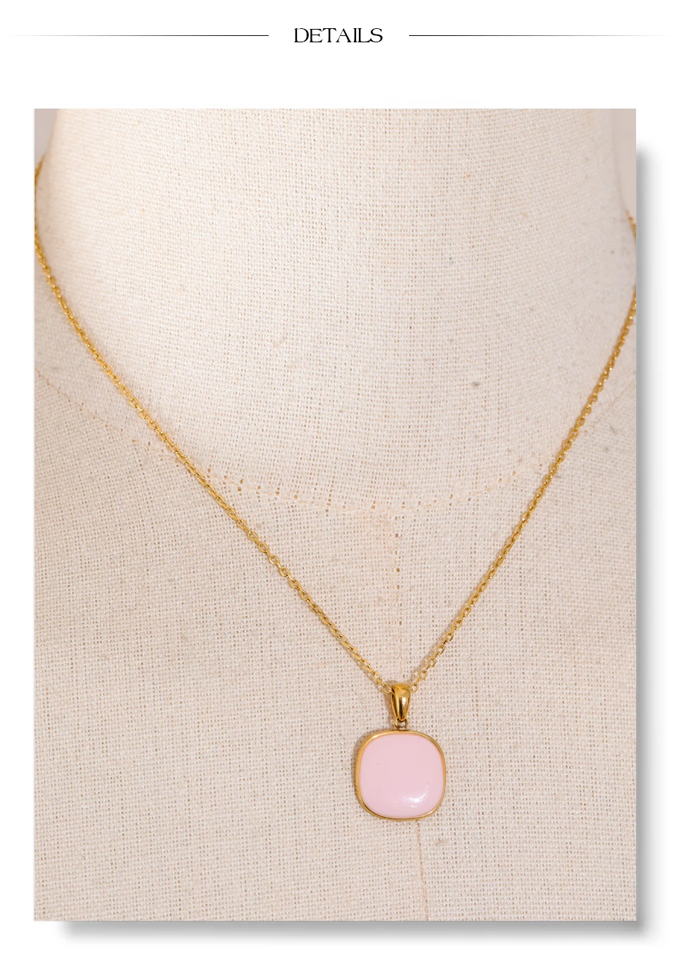 CANDY🍭 Collares con colgante cuadrado de color caramelo esmaltado de acero inoxidable / Varios colores
